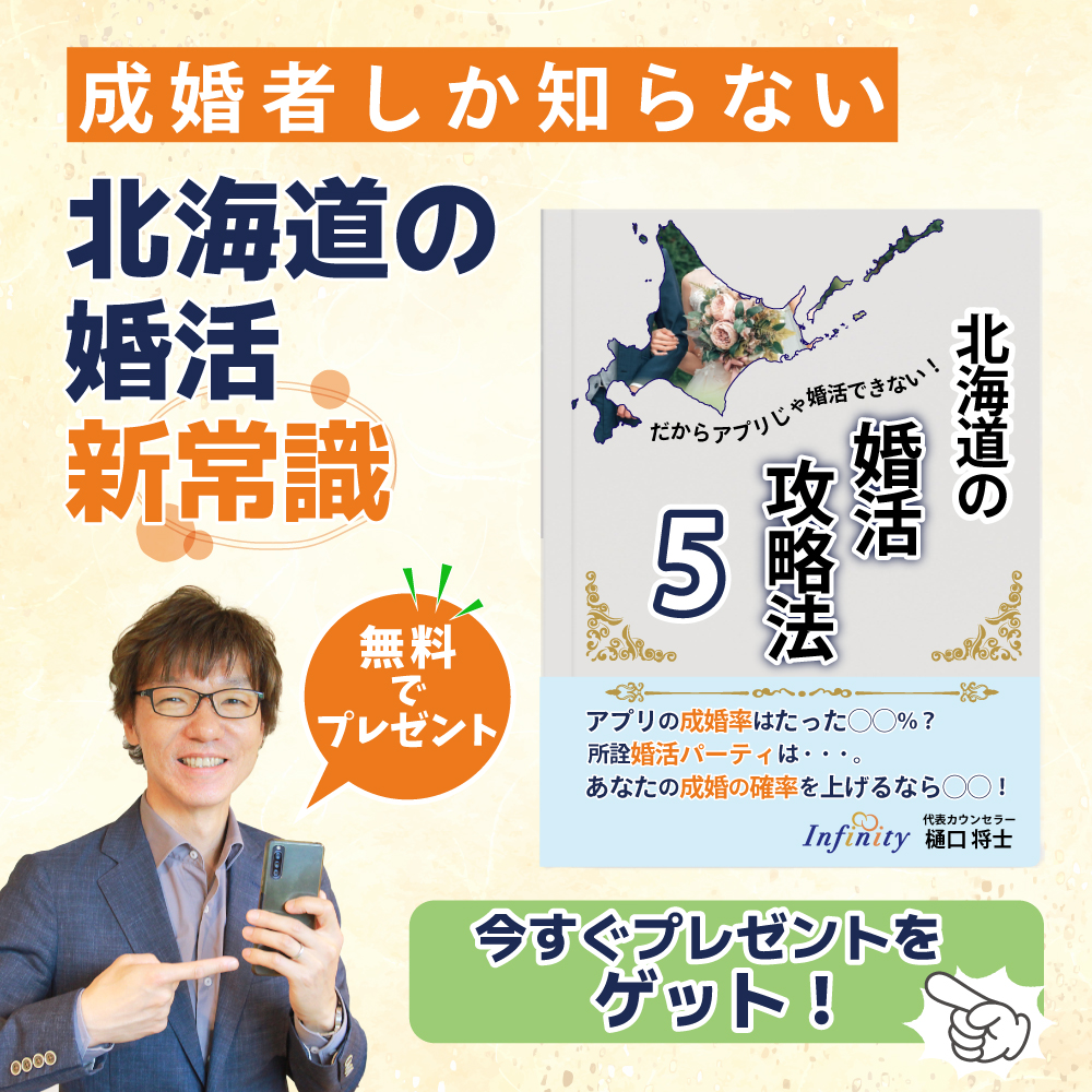 『成婚者しか知らない 北海道の婚活新常識!北海道の婚活攻略法5』と『マンネリの日々から脱出してクルッとスルッと婚活成功!』動画を無料プレゼント中